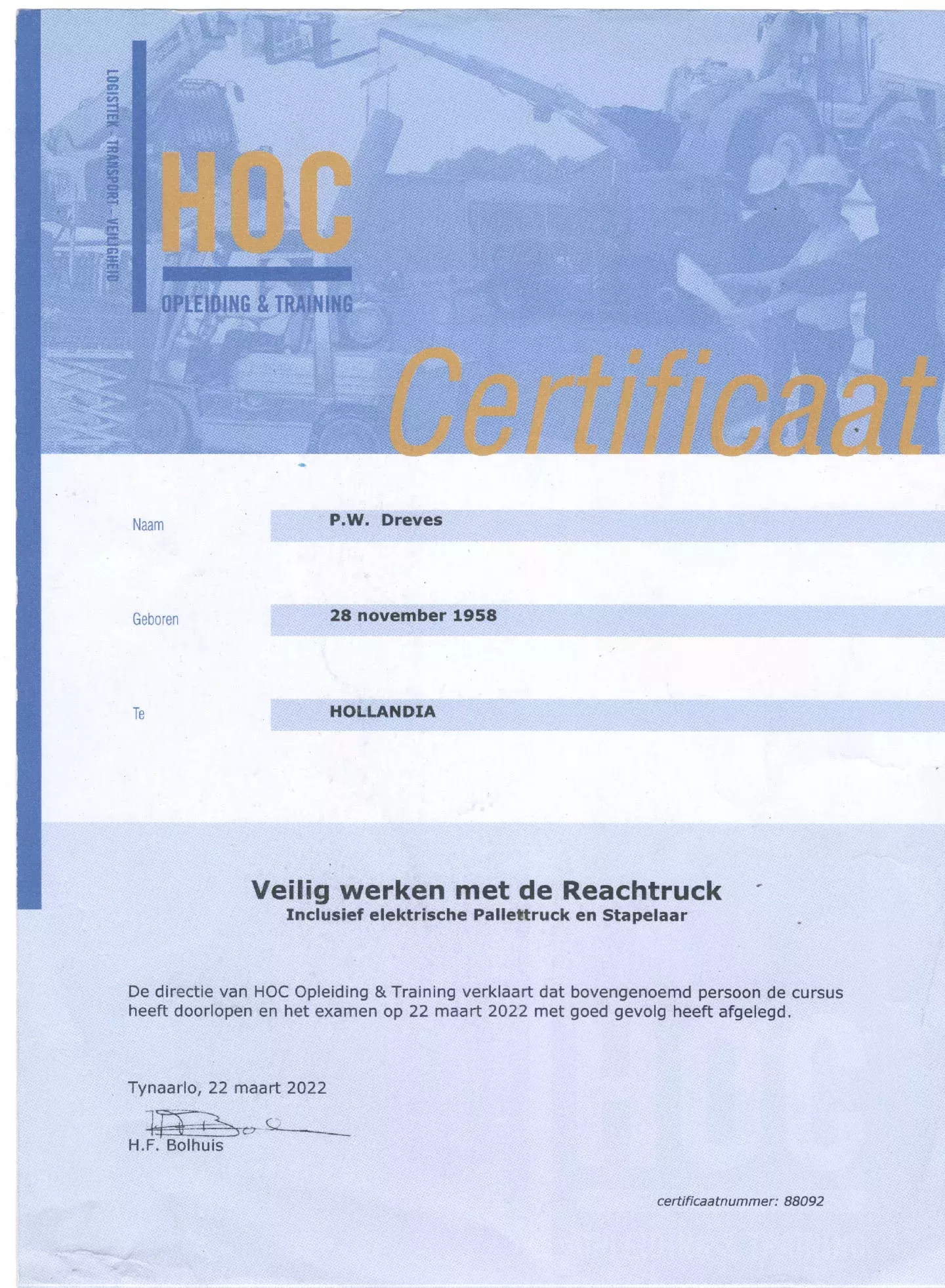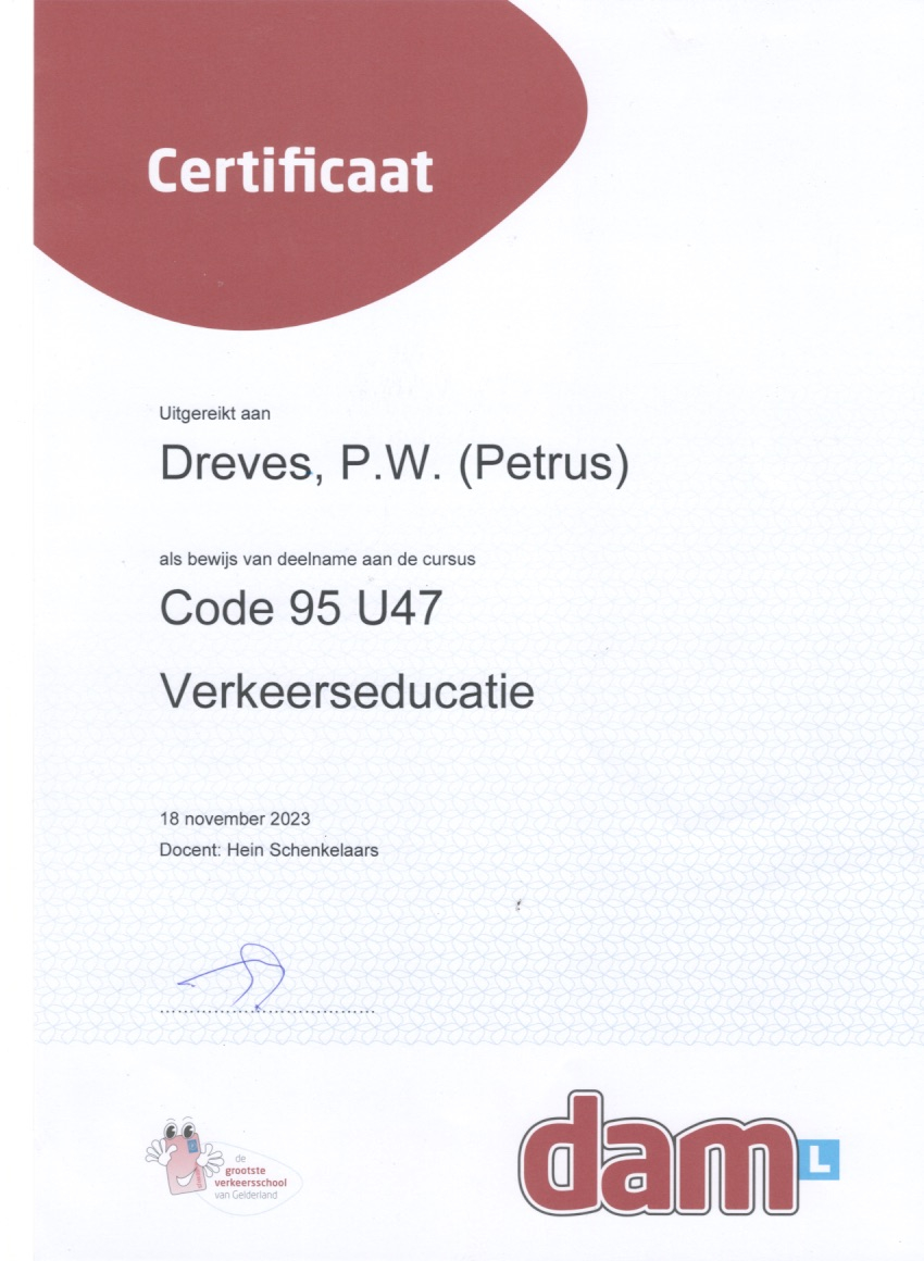 Hier op deze pagina deel ik trots mijn twee belangrijke certificeringen: de HOC Opleiding & Training en Code 95 U47.